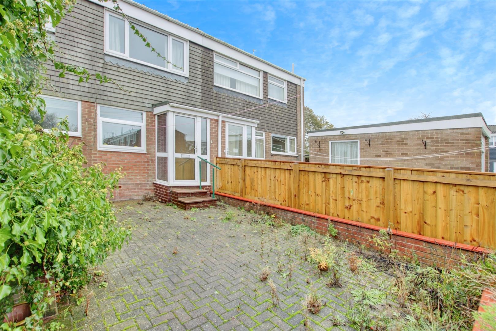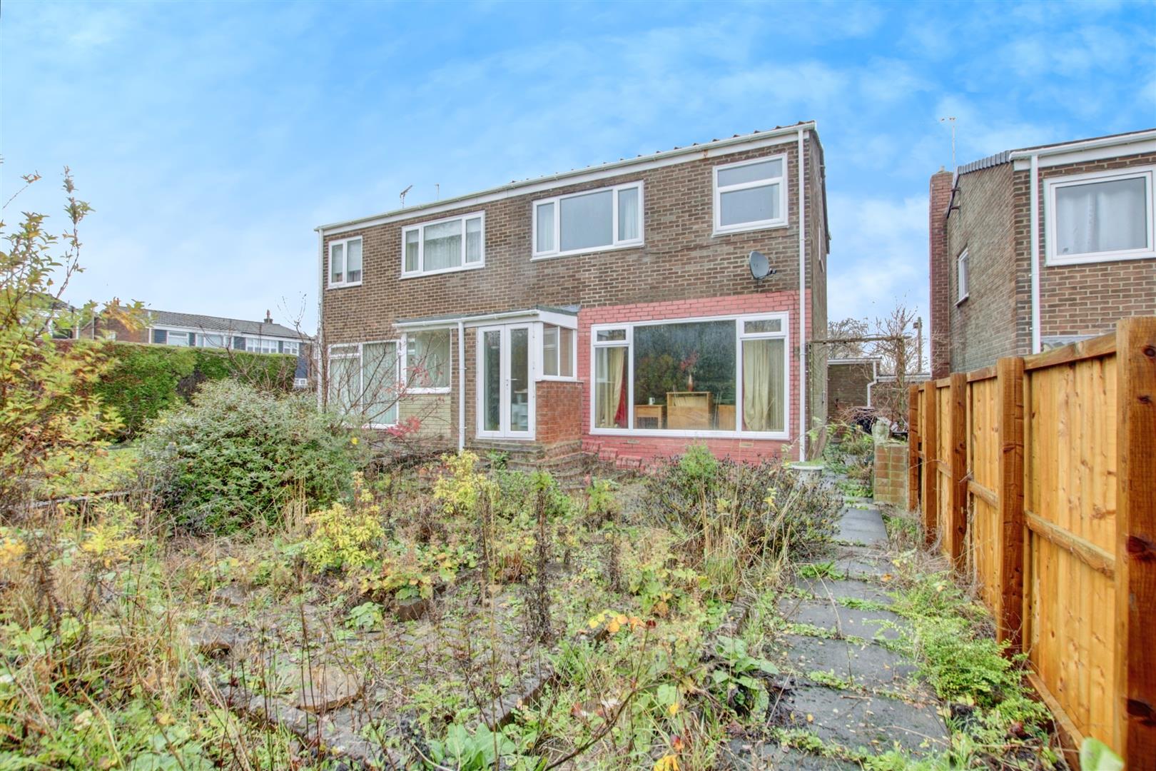 Three-bedroom semi-detached property in need of modernisation, offering pleasant views to the front, a single garage, and a driveway to the rear.
