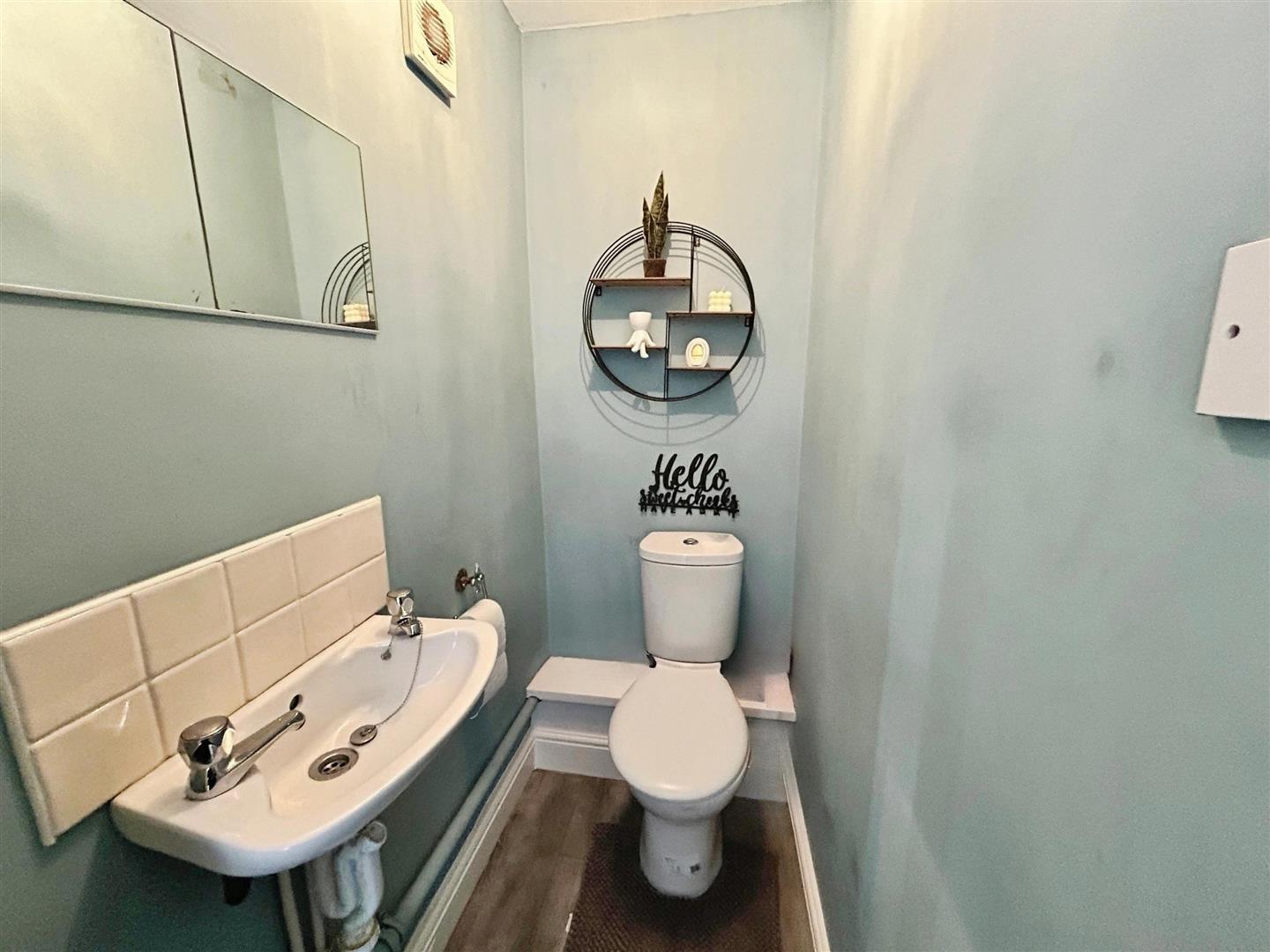 Low level W.C., wash hand basin, extractor fan.