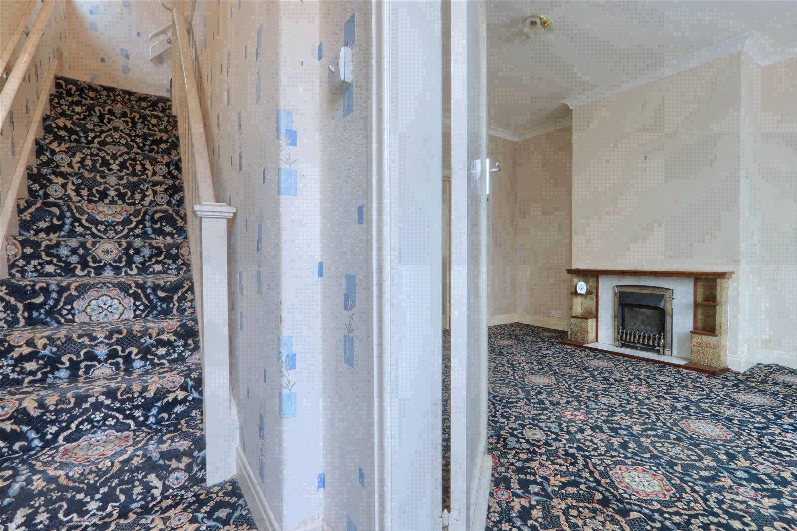 Part glazed upvc entrance door. Radiator and stairs to first floor. Door to the living room.