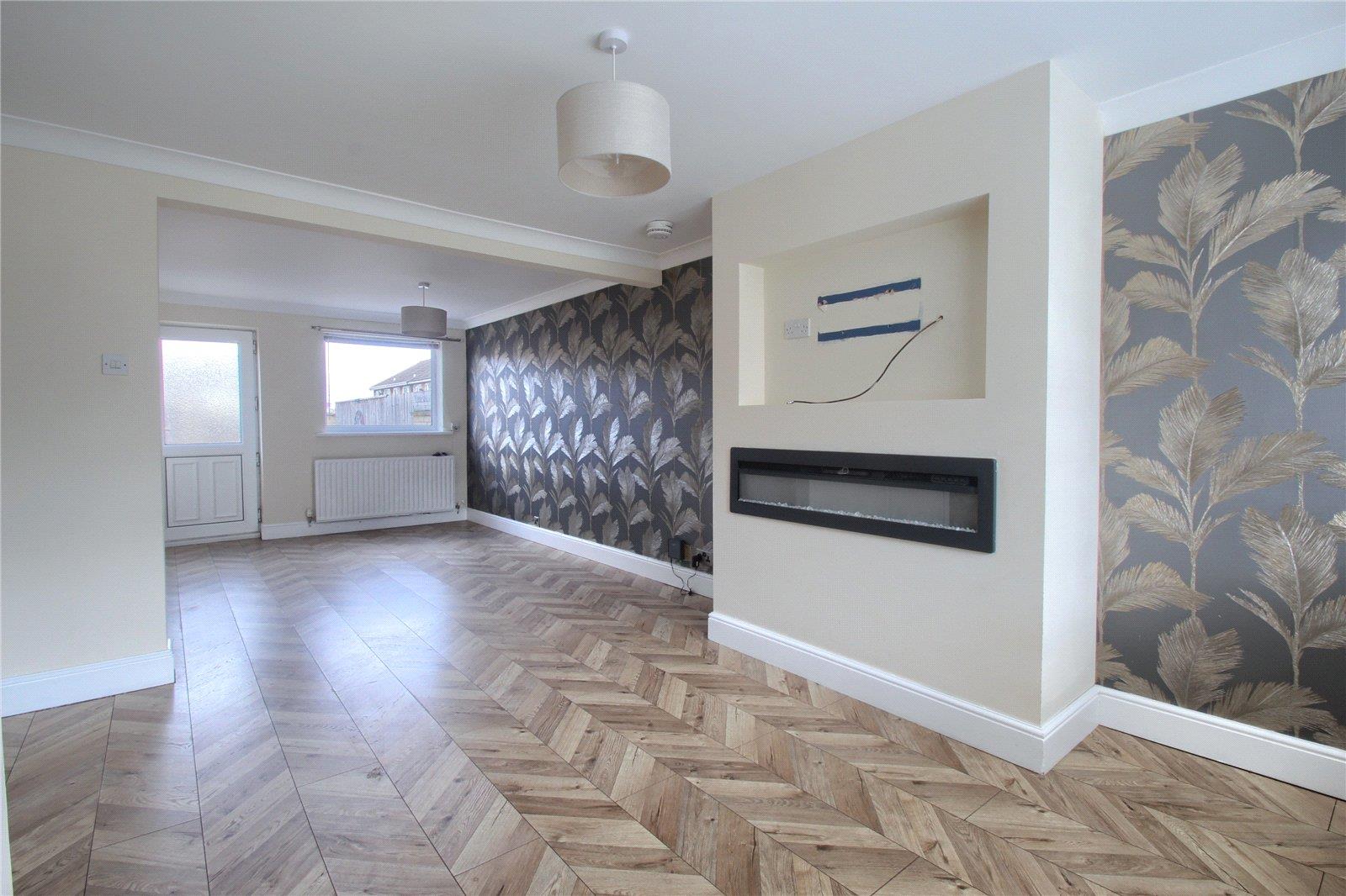 With electric flame effect fire, two radiators, storage cupboard and UPVC door to the rear garden.