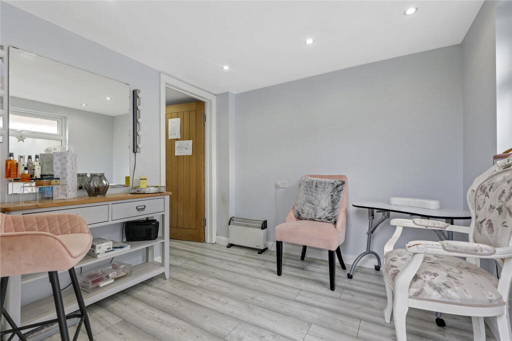 Externally there is a lawned garden to the front elevation with a block paved driveway and gated access leads to the converted garage. To the rear there is an enclosed garden with spacious patio, lawn and dwarf wall.