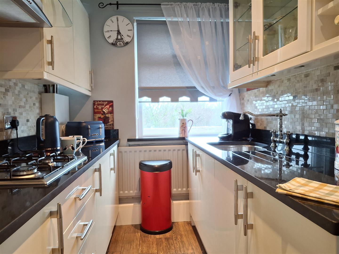 Granite worktops. gas hob and electric oven, double glazed window and splashback tiling.