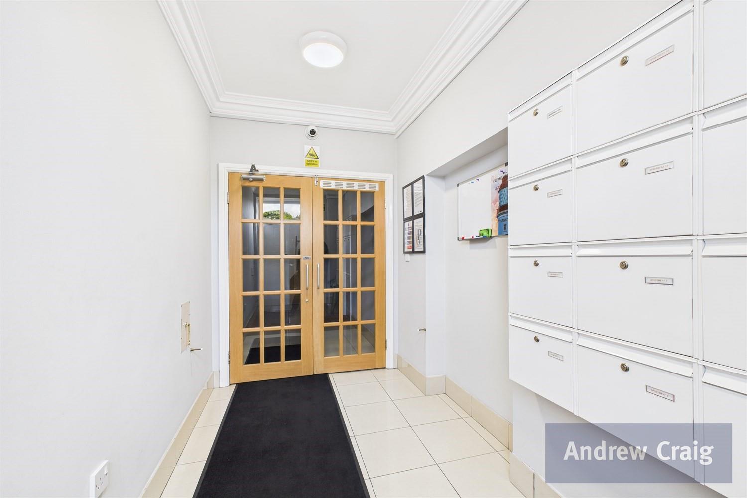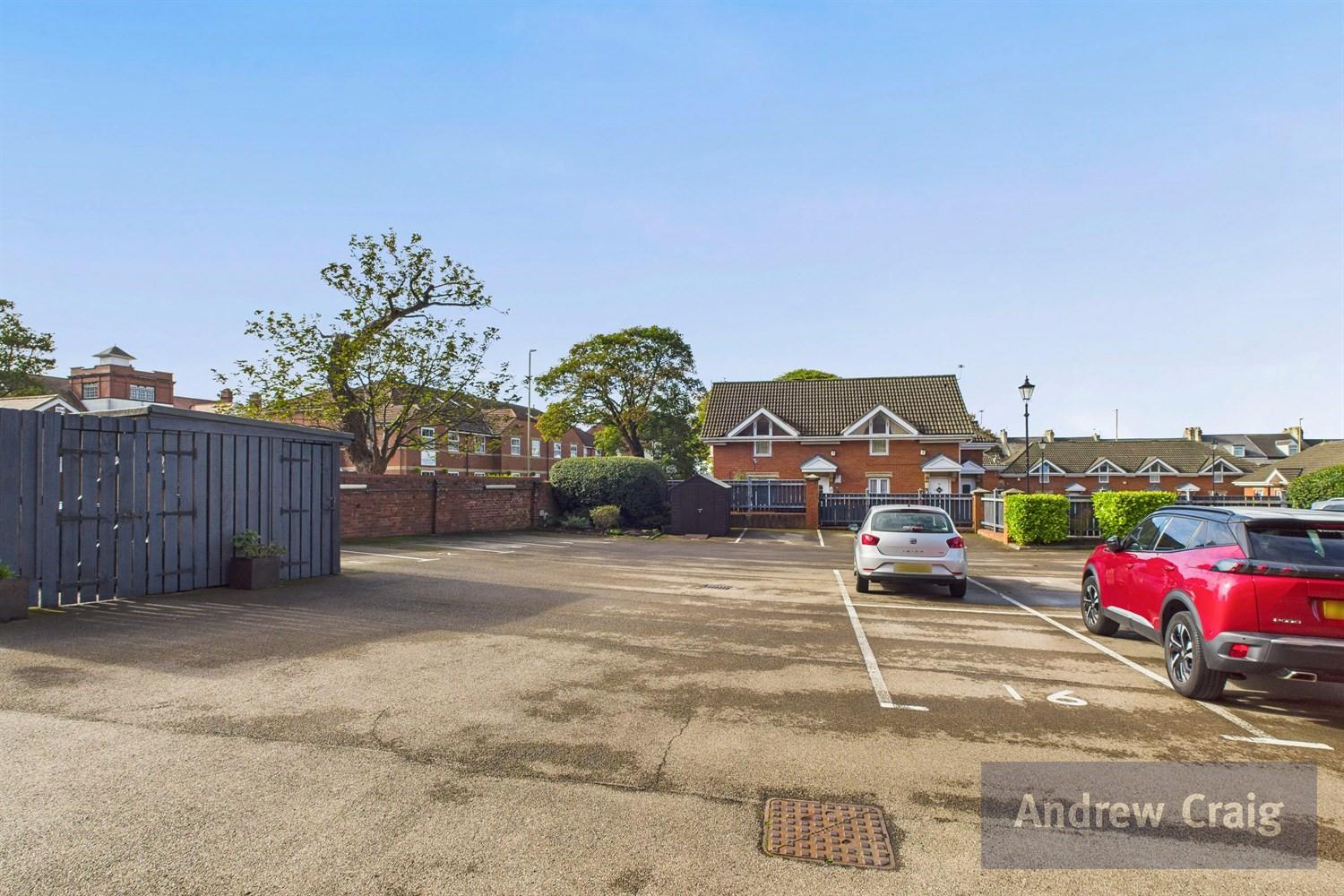 The secure, privately managed building features a communal entrance with intercom entry and a lift serving all floors. Residents benefit from an allocated parking bay and visitor spaces within a private car park protected by electric double gates for added security and peace of mind.