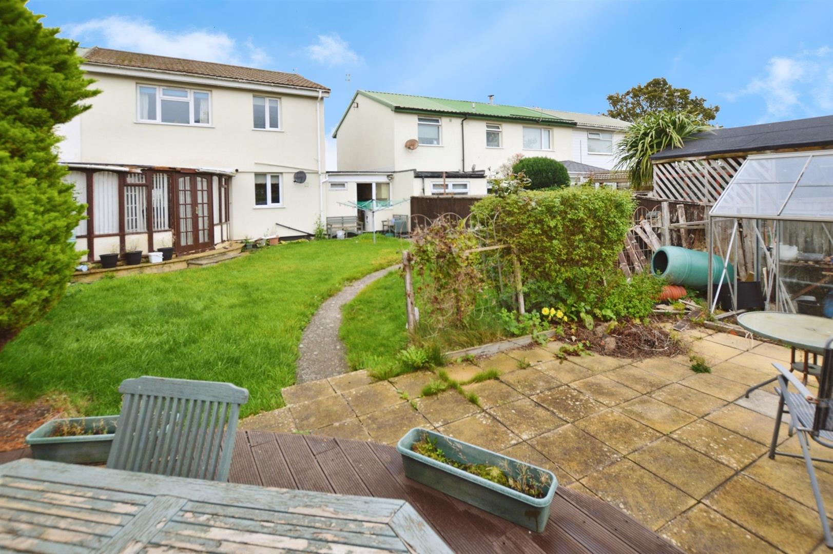 Fenced boundaries, laid mainly to lawn, patio area, decked area, bushes and shrubs