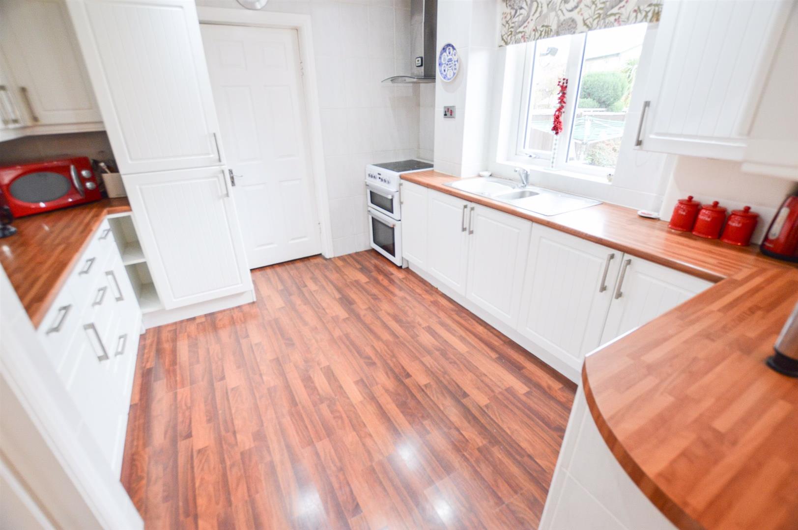 Double glazed window to rear, double radiator. Fitted with a range of wall, drawer and base units with roll top work surfaces, stainless steel sink and drainer unit with mixer tap, tiled splash backs, space for cooker and fridge, spotlights, open access to conservatory