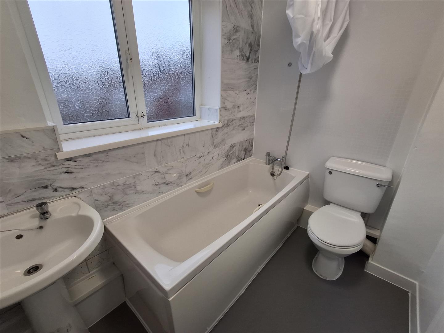 Panelled bath with shower attachment, wash hand basin, wc and double glazed window.