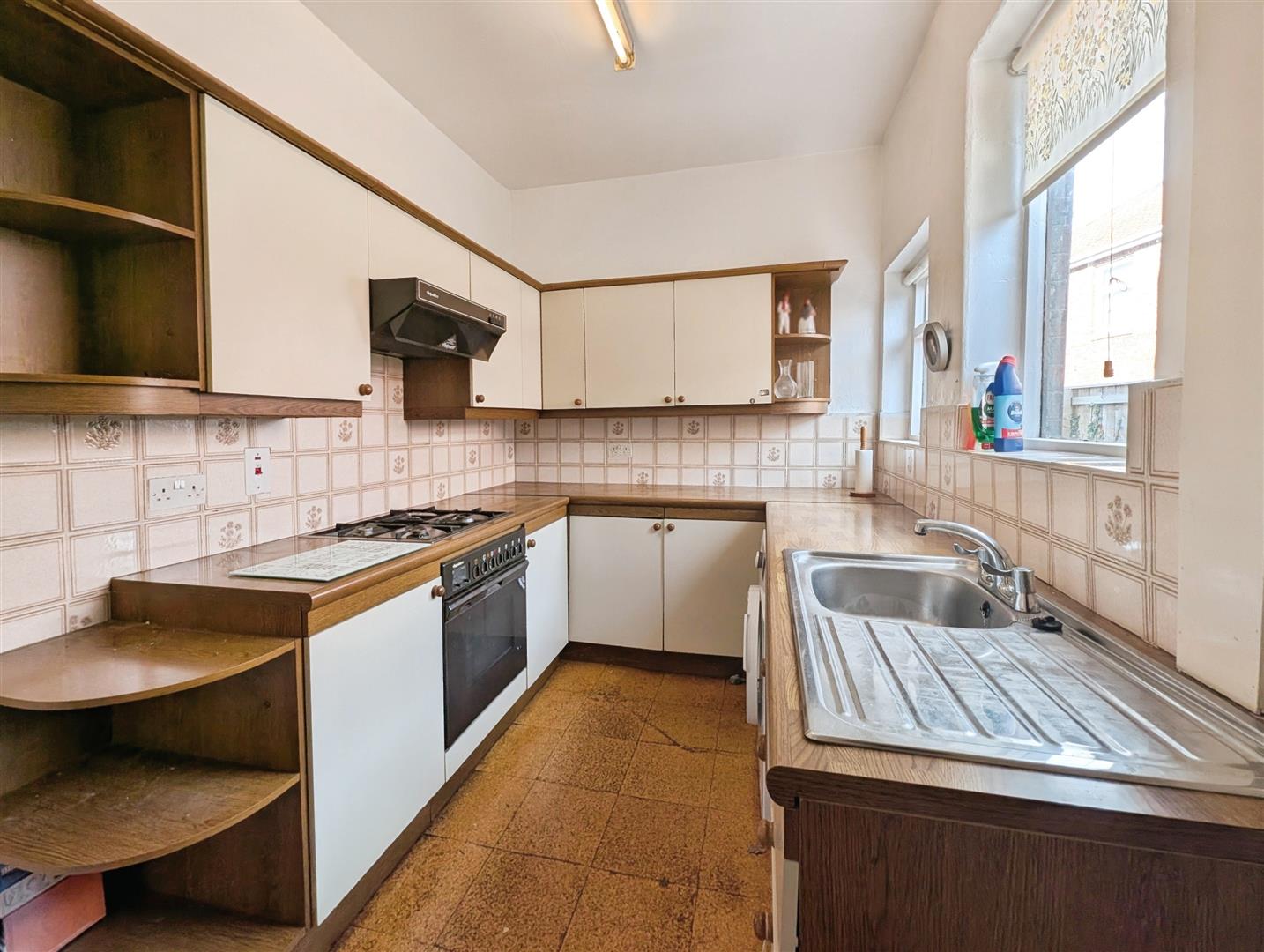 Two single glazed windows to the rear. Plumbed for washing machine. Sink/drainer. Gas hob. Radiator.