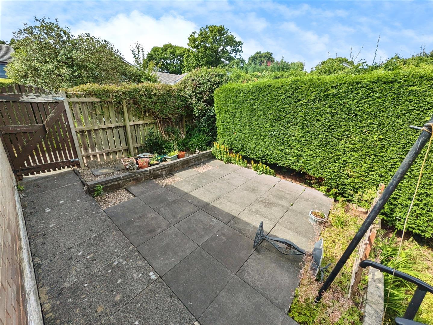 There is an enclosed garden to the rear with mature plants, patio area and a hedge boundary. There is also a garden to the side which has steps up to;