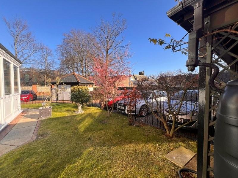 Laid mainly to lawn, small path area, and flower, tree and shrub borders.