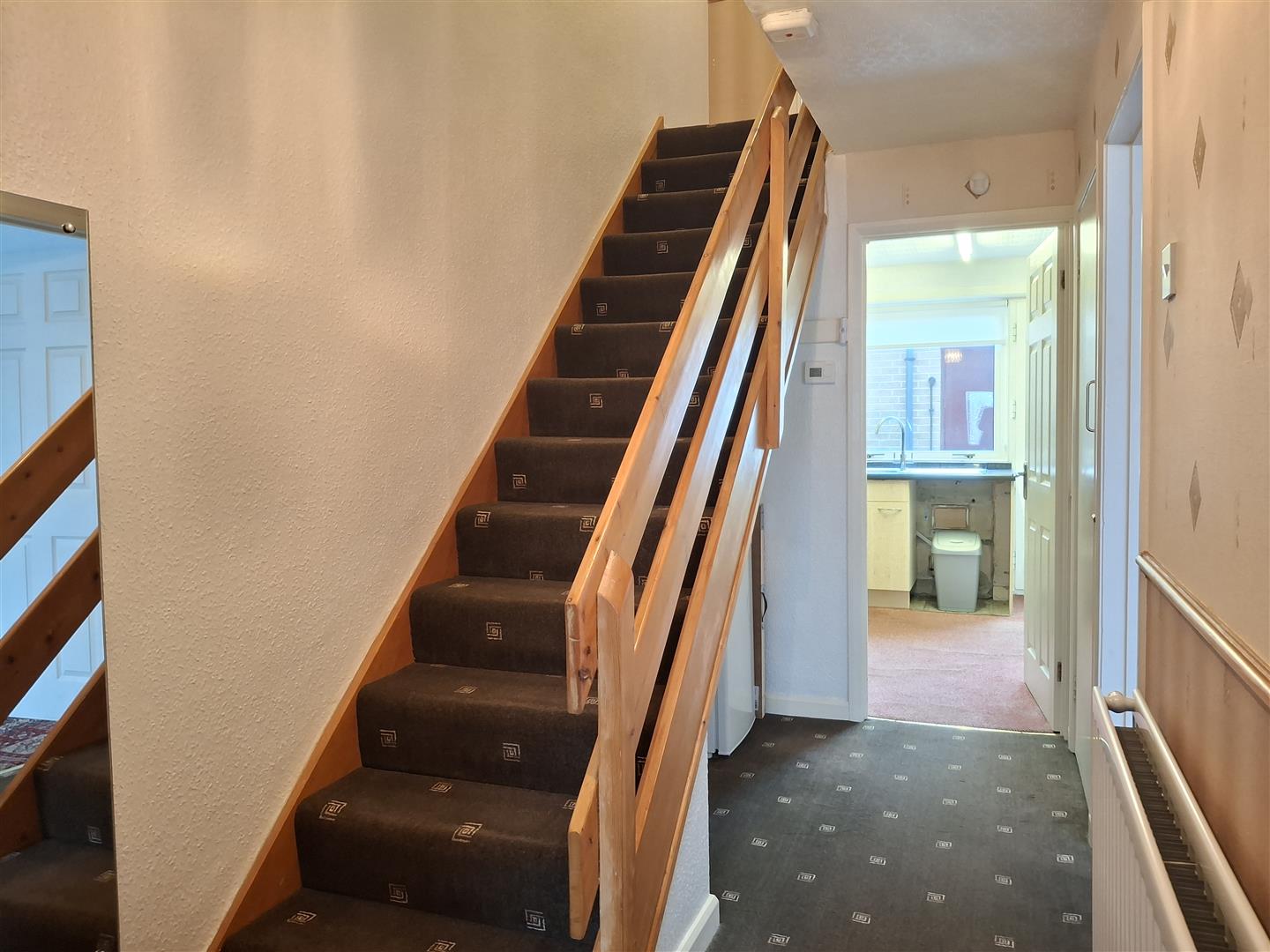 Part glazed upvc entrance door, dado rail, radiator and stairs leading to first floor.