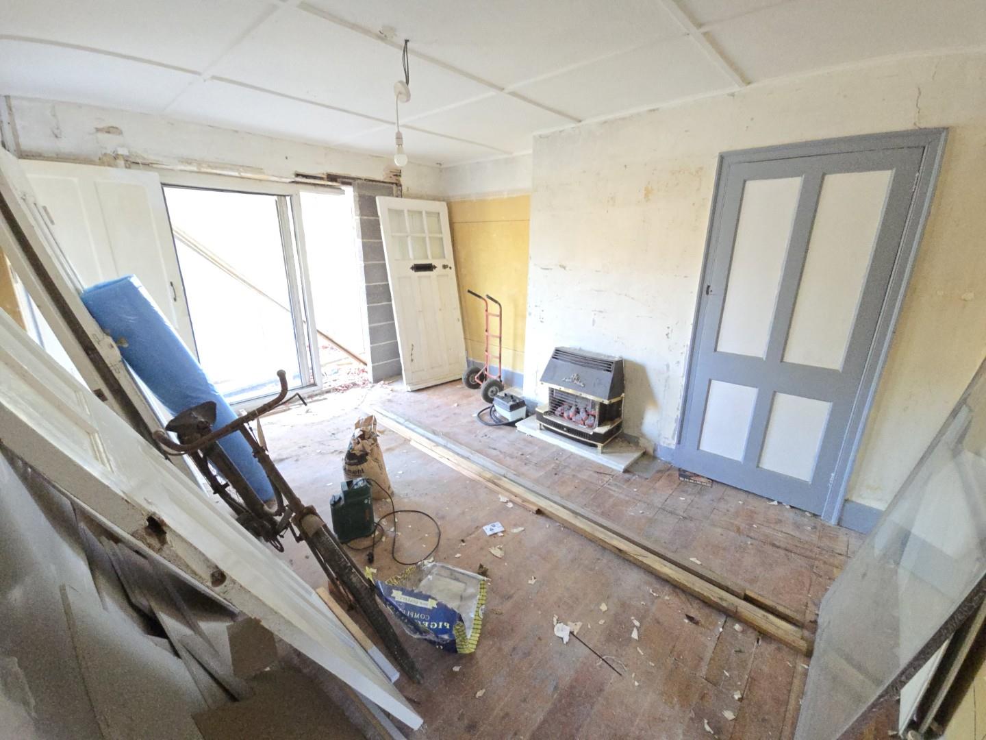 uPVC double glazed sliding door to rear, brand new uPVC French doors are provided but not installed. Feature gas fireplace, storage cupboard