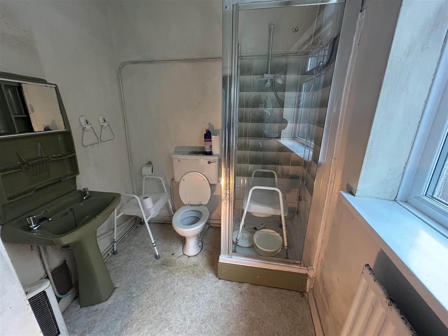 Double glazed window, shower cubicle, low level w/c, washbasin, radiator.