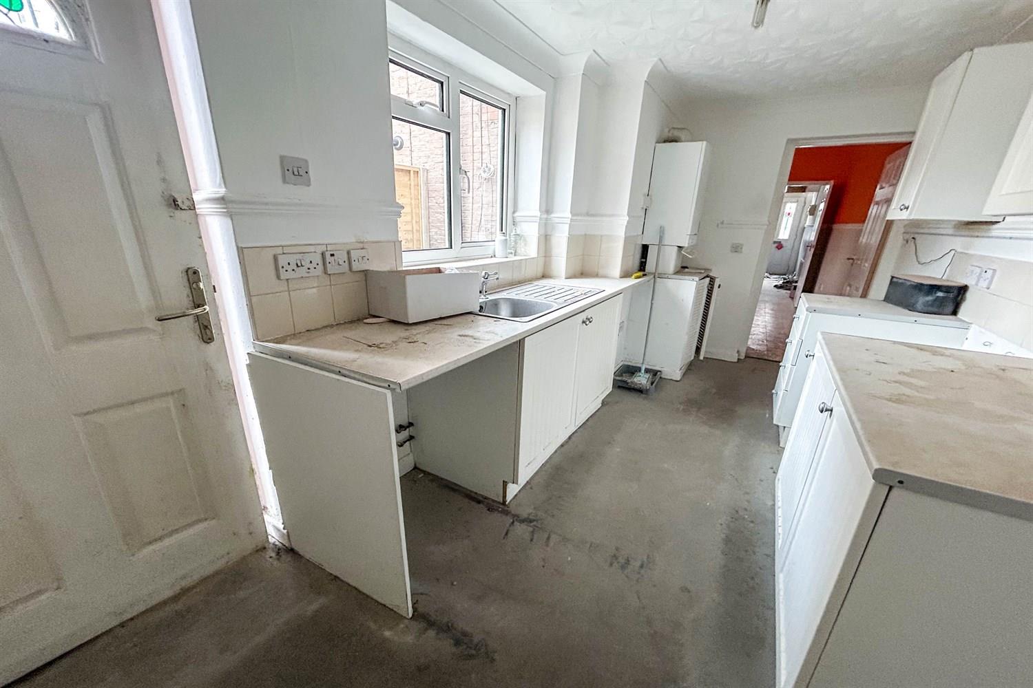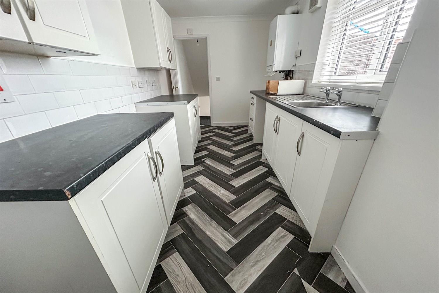 Two double glazed windows, base and wall units, combi boiler, stainless steel sink and drainer unit.