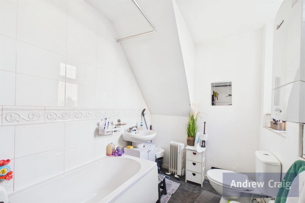 The upper flat is accessed via its own entrance hall with stairs rising to the first floor landing. There is a lounge to the front aspect, two bedrooms, and a kitchen to the rear which leads through to a shower room. From the shower room, stairs provide access down to a shared rear yard.