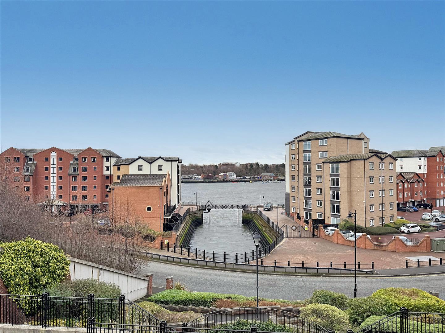 Superbly located, enjoying an elevated position on the banks of our vibrant North Shields Quay, with panoramic views from the Courtyard area over the river. Just a short walk from the bustling Quay with restaurants, bars and local, independent shops. Close to North Shields town centre, Metro, bus routes and approximately a 15-20, minute walk from Tynemouth Village and beach. Union Stairs is a contemporary, gated development overlooking the river, with secure entry system and fobbed gates providing access to both the courtyard and the under-ground parking area. Our two- story property enjoys a lift within the block and spacious room sizes with a secure entry system, hallway with storage, ground floor bathroom with shower, two spacious bedrooms, bathroom with shower, turned staircase up to the first floor. The superb sized lounge enjoys a dual aspect with measurements of 19’5 x 12’6, flowing into the kitchen area, also benefiting from integrated appliances. The property benefits from gas radiator central heating system and double glazing. Secure, allocated parking bay, communal courtyard town gardens.