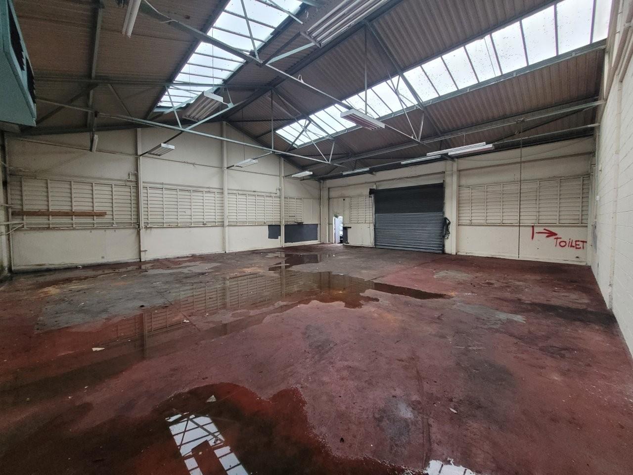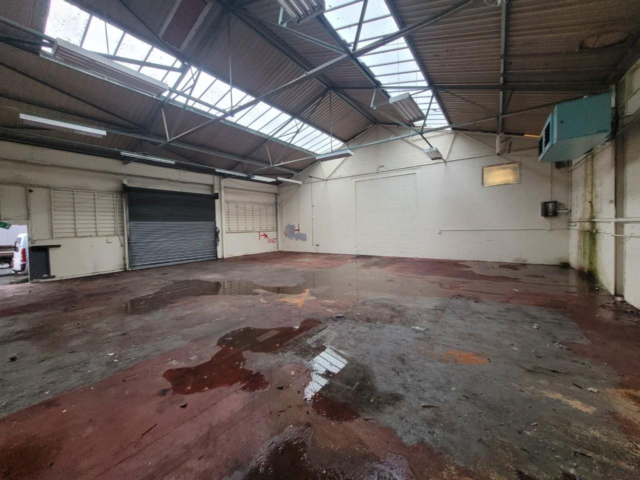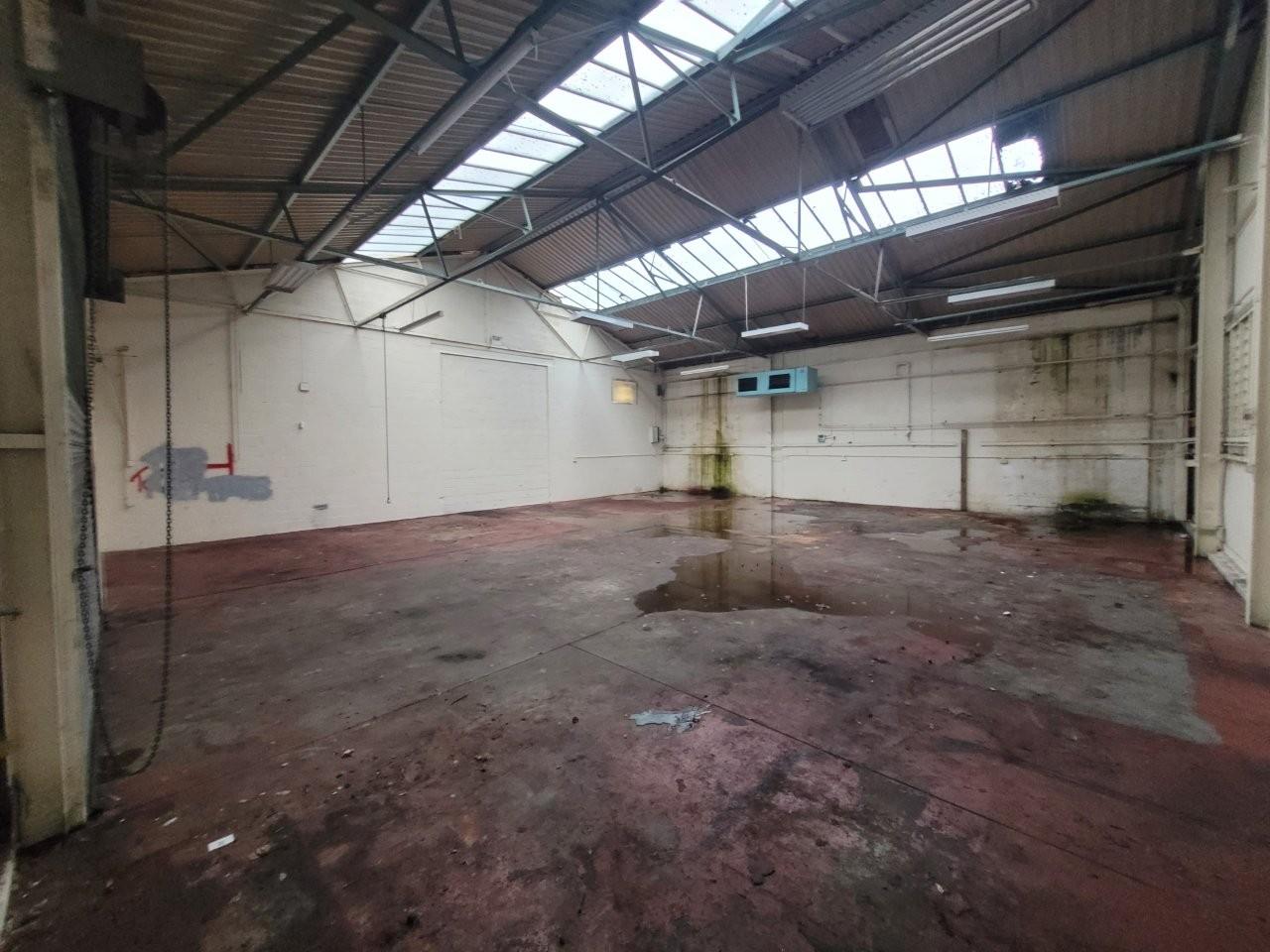 An end terrace industrial unit of steel portal frame construction with block work walls and a metal profile sheet pitched roof. Internally the unit is open plan with large single roller shutter at the front of the property.