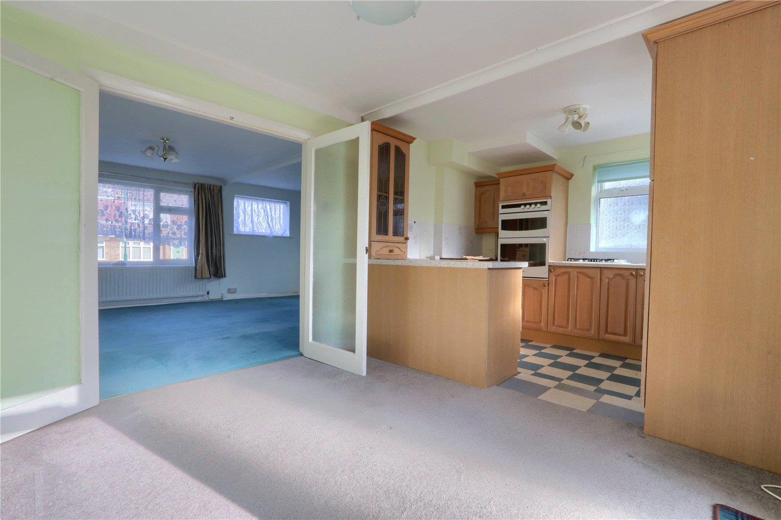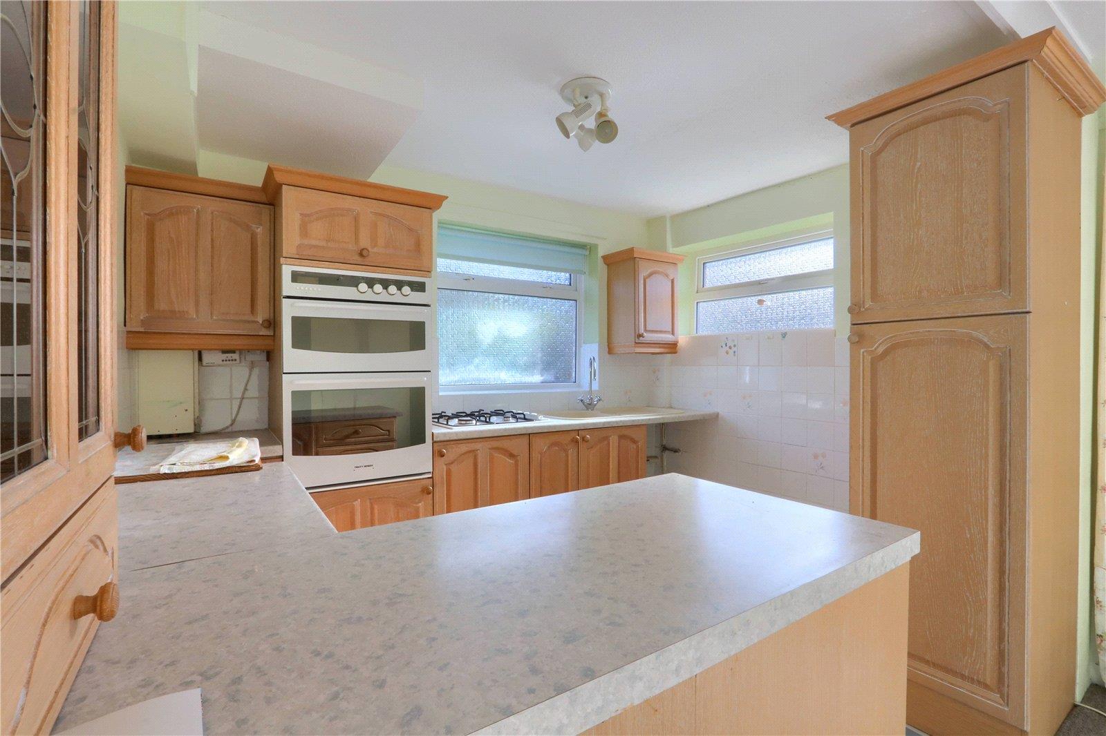 A light and bright room with neutral decoration, radiator, fully glazed UPVC door to the rear garden and opens through to the kitchen with oak fronted units, integrated electric oven and gas hob, plumbing for washing machine, vinyl flooring, twin UPVC windows and a storage cupboard houses the boiler.